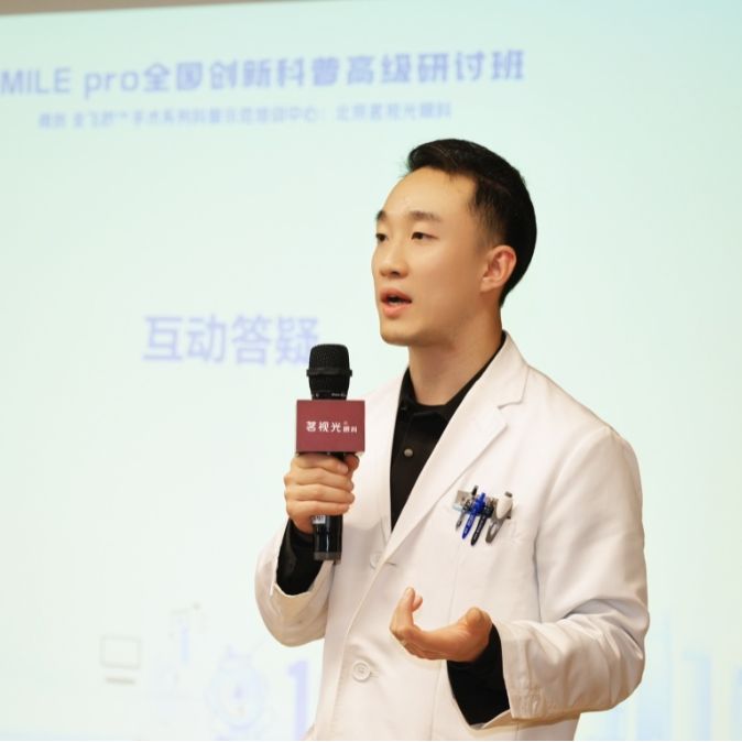 建国门院区业务院长陶冶和大家分享了如何用通俗易懂的语言,给近视朋友把SmilePro新技术的优势和特点讲明白,帮助近视朋友们在手术前对新全飞SmilePro手术有着准确而全面的理解。
